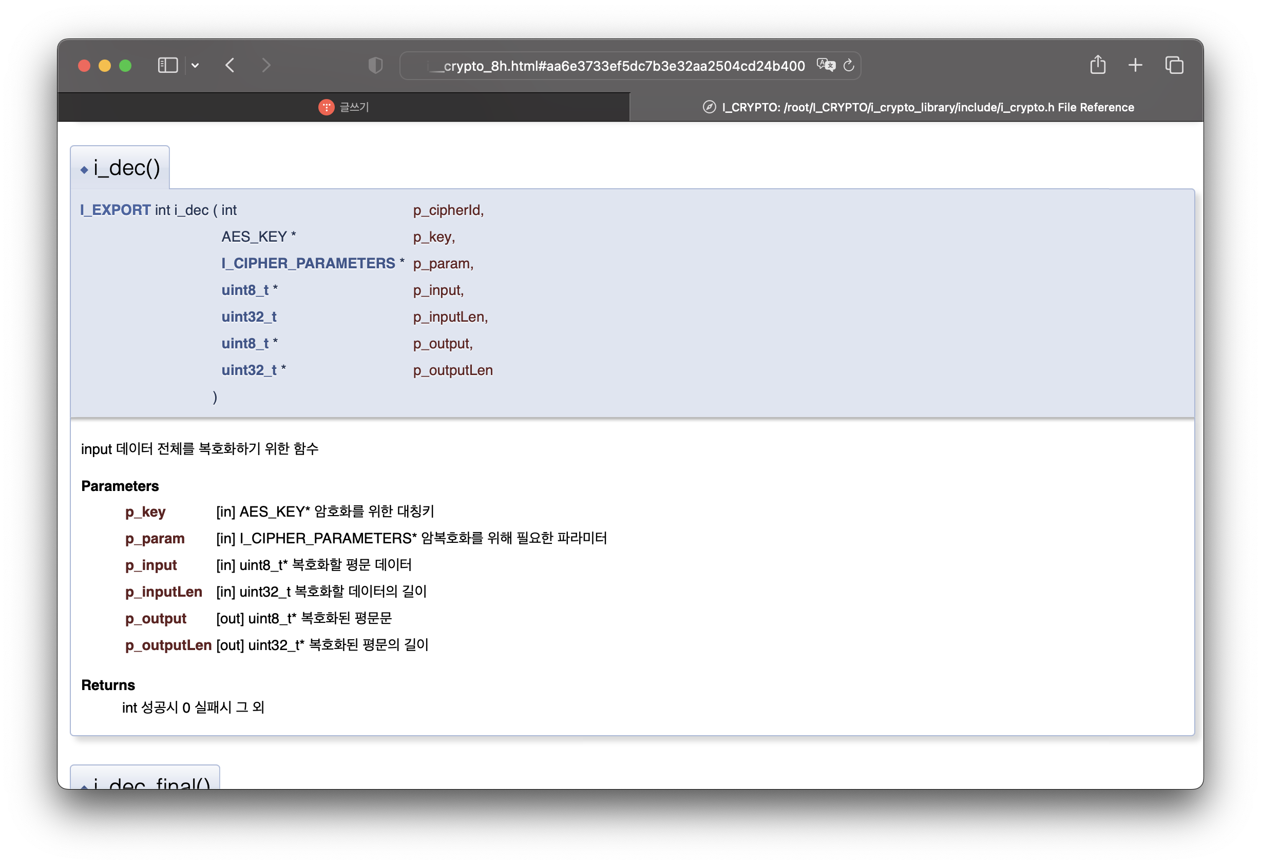 | Crypto Project : 1-1. i_crypto library - 구조 및 문서화 예시 (0) | 2023.04.11 |