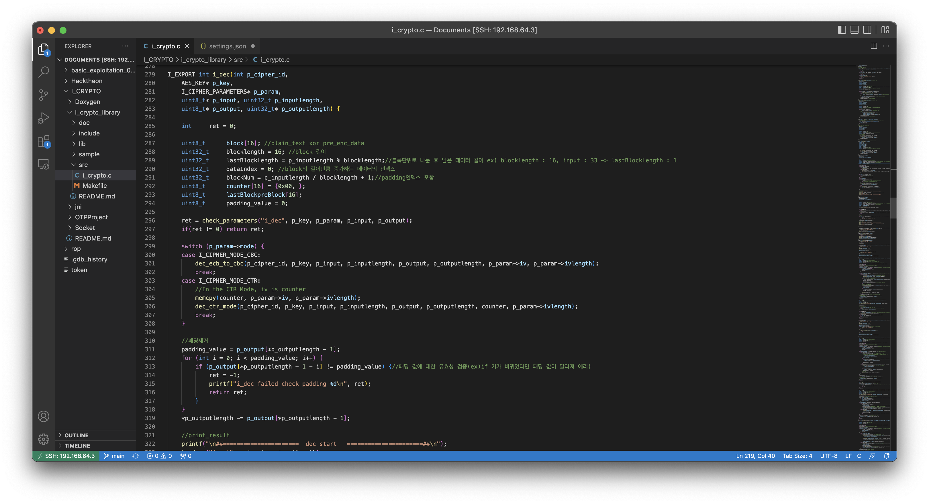 현재 글에서 다루는 부분은 아래 깃 repository에서 i_crypto_library/src/i_crypto.c에서 확인할 수 있습니다.