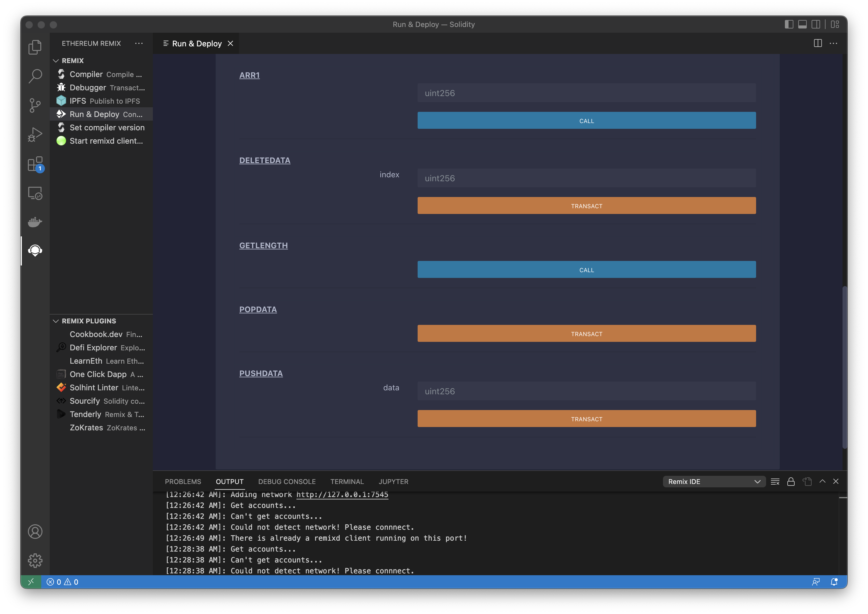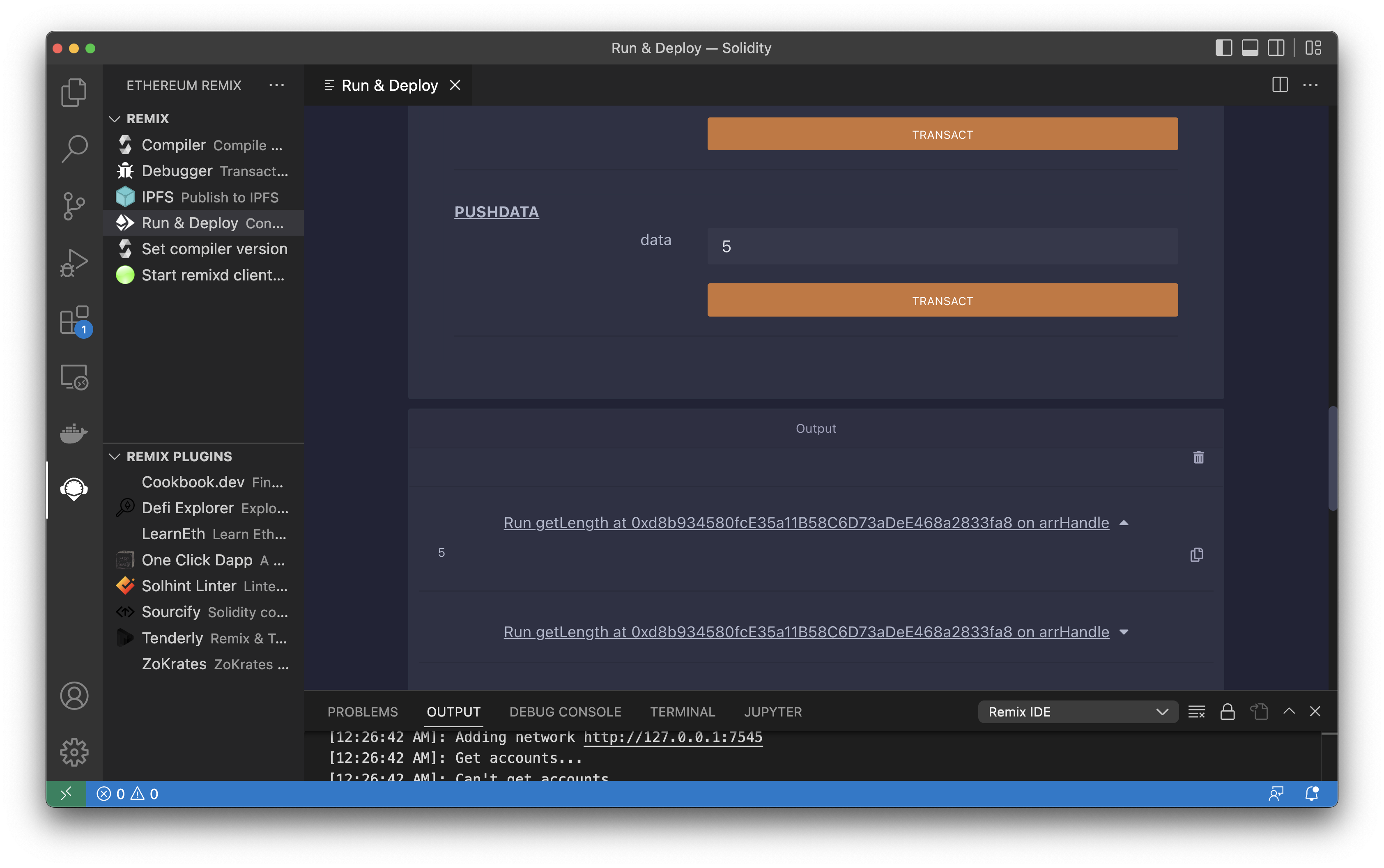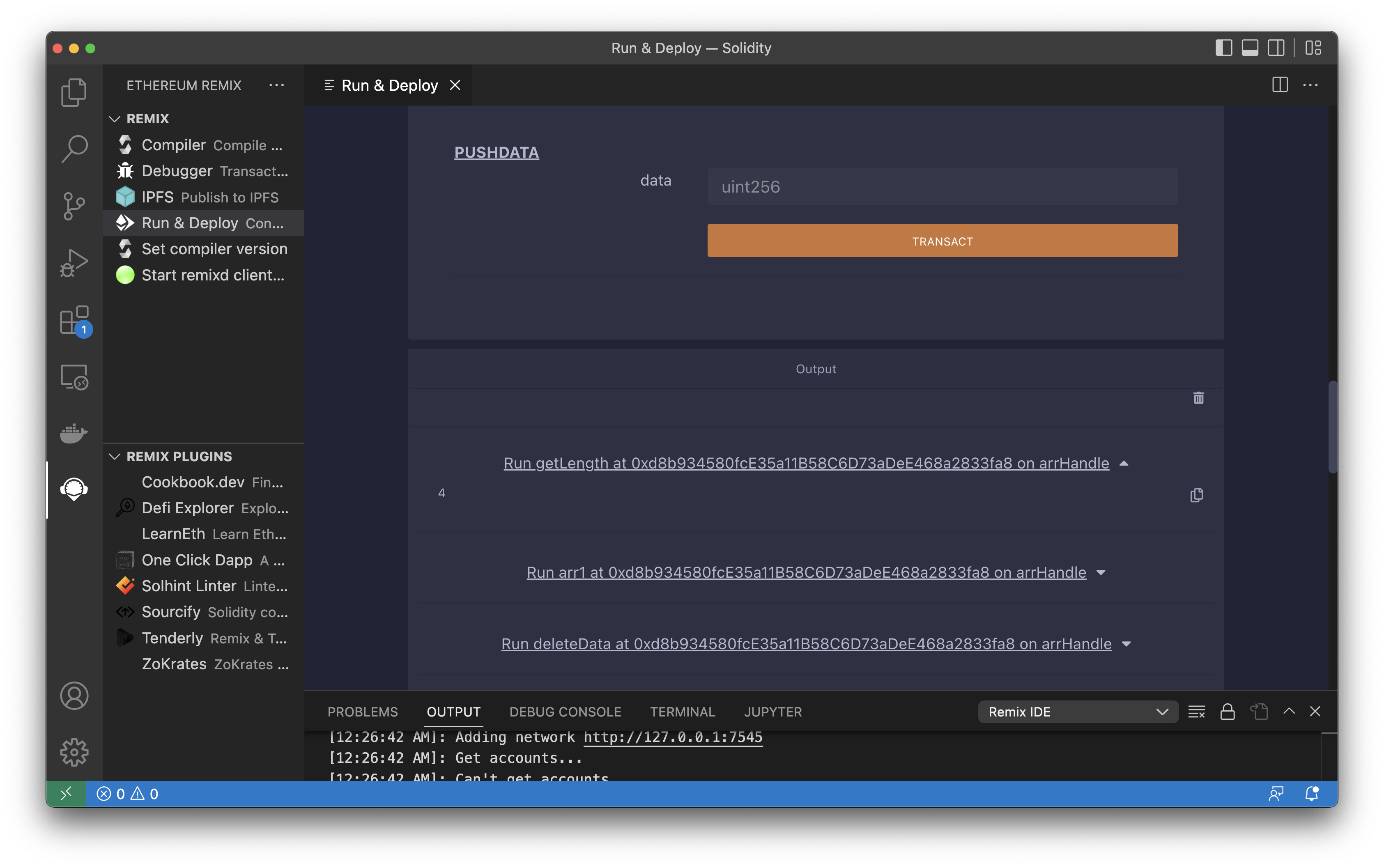 리믹스에서 해당 컨트랙트를 deploy하고 테스트해보자.
