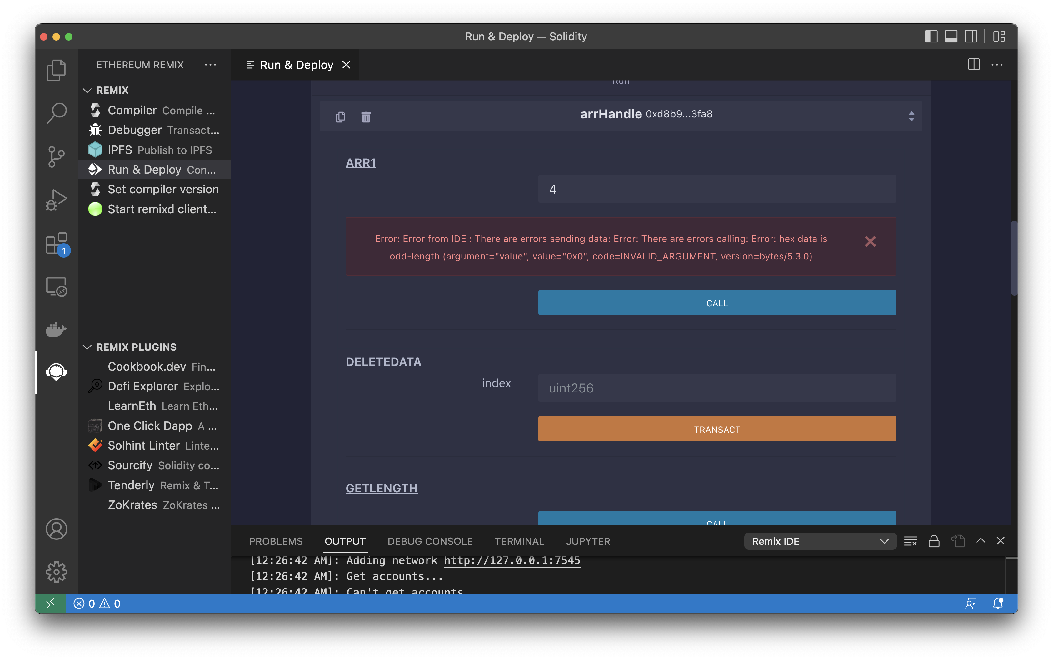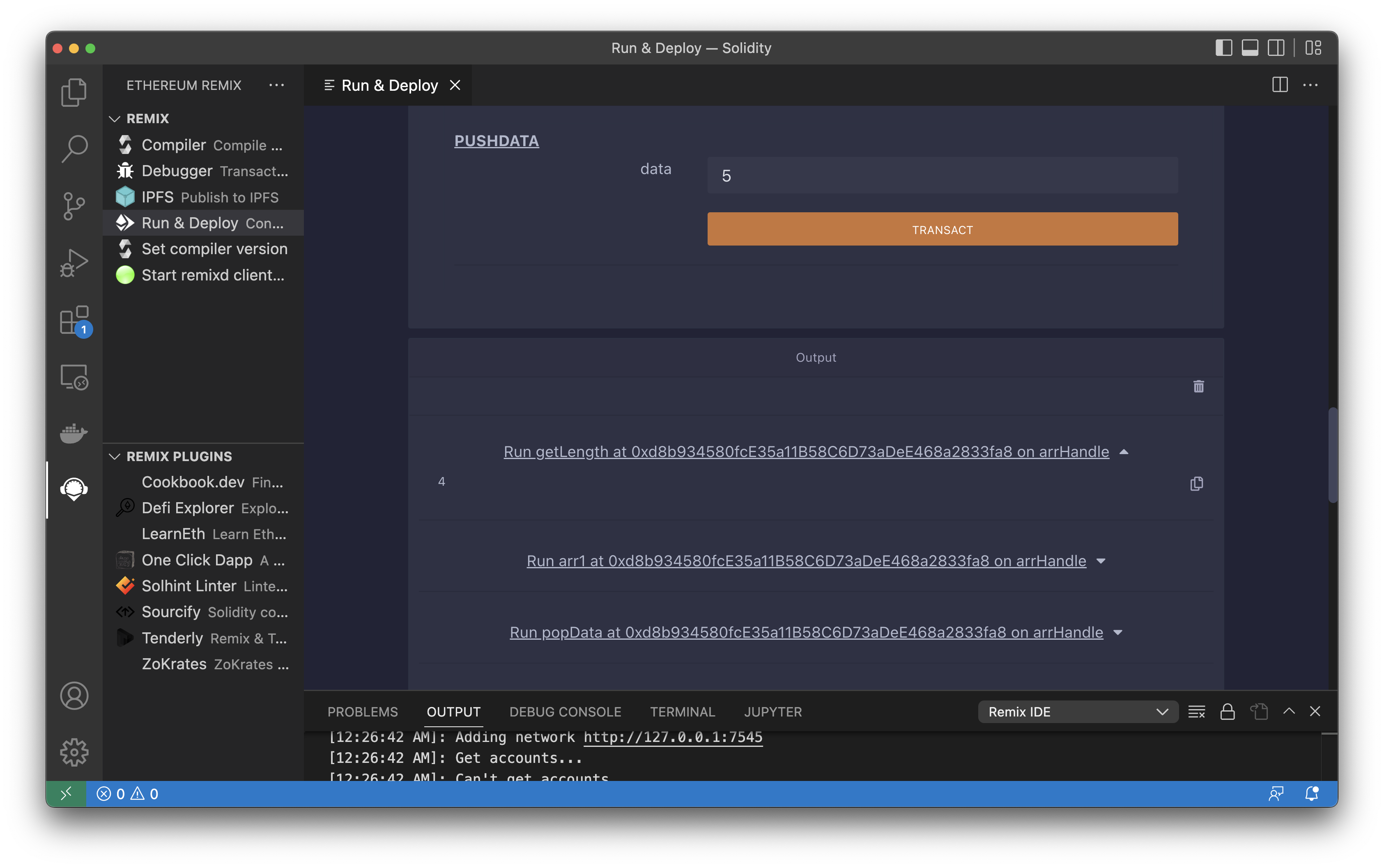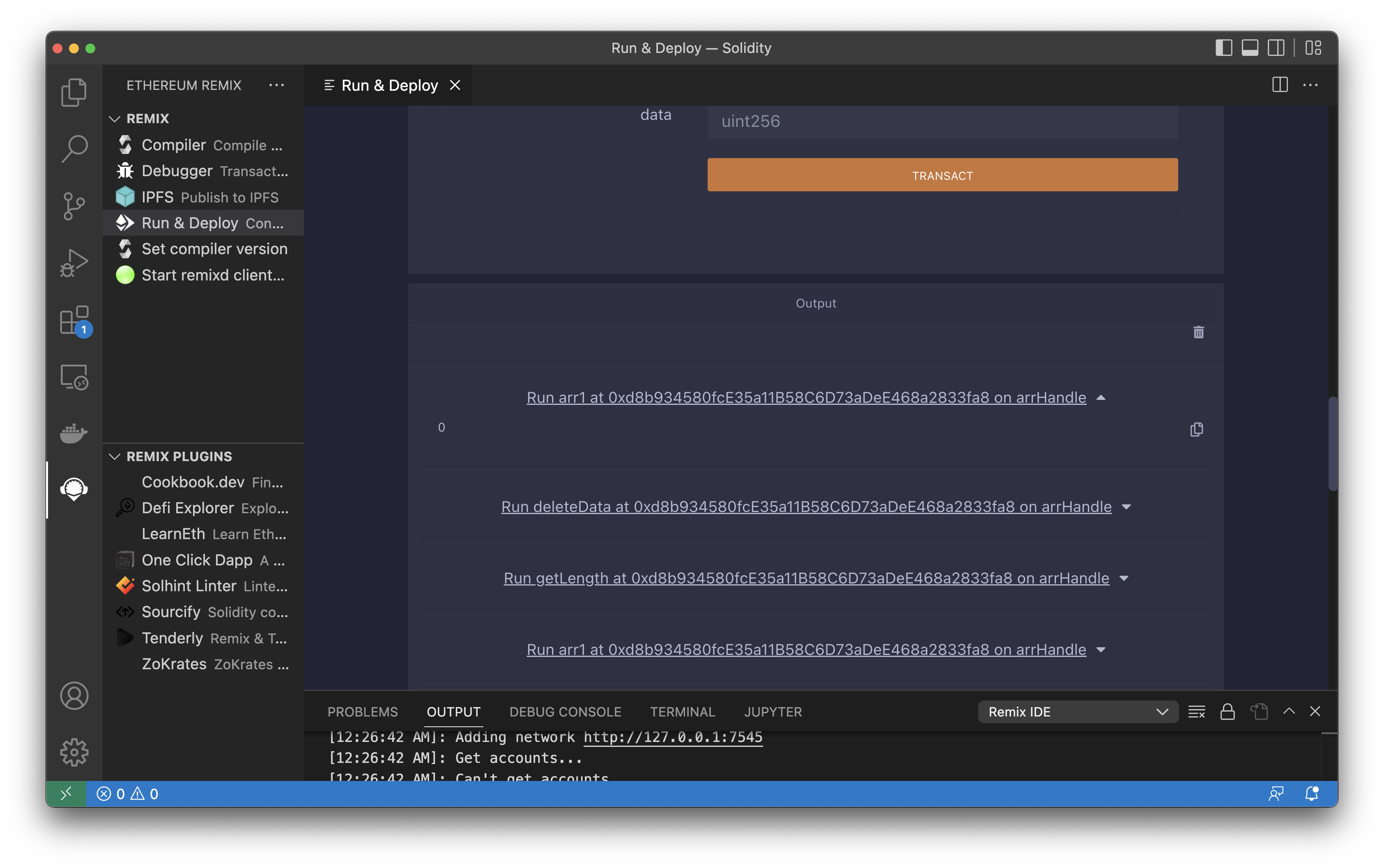리믹스에서 해당 컨트랙트를 deploy하고 테스트해보자.
